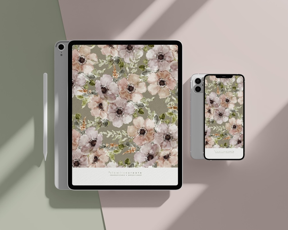 Each month, I’ll share wallpaper set featuring my latest florals,